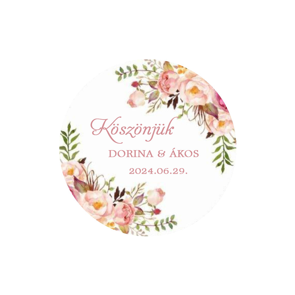 Válaszd ki egyedi mintádat és a kasszában a megjegyzés mezőbe írd be a kívánt neveket a példa alapján (pl.: Andrea, Bence). 15db matrica / ív Vízálló, szakadásmentes matricáinkat használhatjátok álmotok esküvőjén, a köszönőajándékokhoz. A saját nevetekkel ellátott egyedi matricák örök emléket biztosítanak a család és barátok számára adott ajándékokon. Emellett használhatjátok az esküvői italos üvegekre, asztalszámokra, a dobócsokron is.Mennyiségi kedvezmény: 1 ív esetén 1.179ft/ív - 79ft/ matrica3 ív esetén 1.071ft/ív - 71ft/ matrica9 ív esetén 964ft/ív - 64ft/ matrica Méret: átmérő: 5cm. Felhasználható esküvői és kerti parti dekorációhoz, asztaldíszhez.