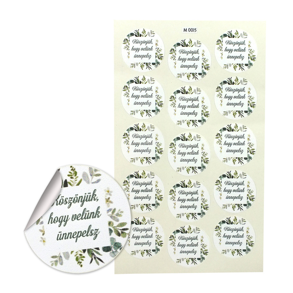 Matrica - köszönjük, hogy velünk... - zöld leveles 15db/lap – esküvői dekorációhoz