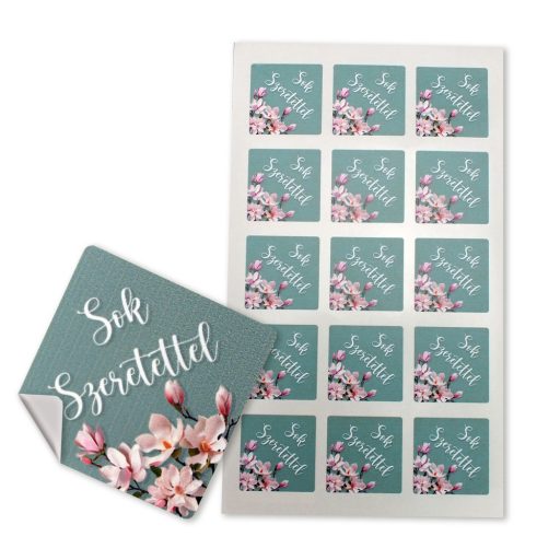 Matrica - sok szeretettel négyzet 15db/lap – kreatív hobby projektekhez