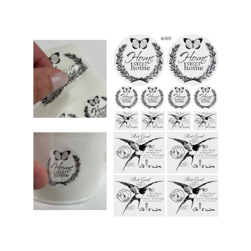 Matrica - Vintage címke átlátszó III. 14db/lap – kreatív hobby projektekhez