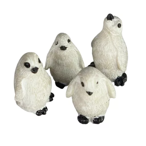 Négy polirezin pingvin apró méretben, de a részletekben hatalmas varázslatot rejtenek!Méret: ~2x1x1cm. Felhasználható karácsonyi asztaldíszhez, koszorúhoz és ünnepi dekorációhoz. Festéssel, ragasztással egyedi karácsonyi