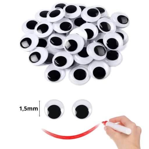 Mozgó szem, kerek 1,5cm 100db/cs – kreatív dekorációhoz