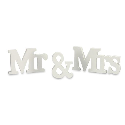 Mr&Mrs fa asztali felirat fehér – esküvői és kerti parti dekorációhoz