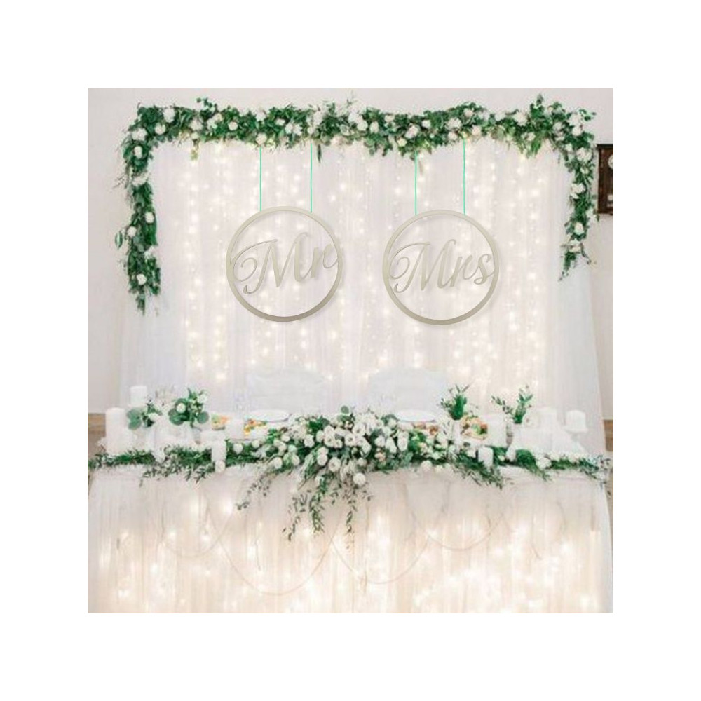 Esküvői dekorációhoz igazítható, a házasok székpárjának támlájára tűzhető kellék.Szín: Rózsaarany (metál). Átmérő: 24 cm, vastagság: 3mm. Felhasználható esküvői és kerti parti dekorációhoz, asztaldíszhez. Virágokkal, sza