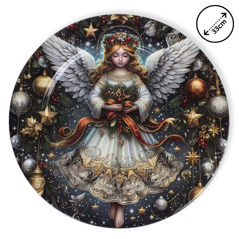 Műanyag, kerek karácsonyi tálca tortákhoz és süteményekhez. Tökéletes választás az ünnepi asztal megterítéséhez, egyszerűvé teszi a torta mozgatását, és dekoratív megjelenésével hozzáad az ünnepi hangulathoz. Kreatív kiegészítőként is használhatod. Átmérő: 33cm