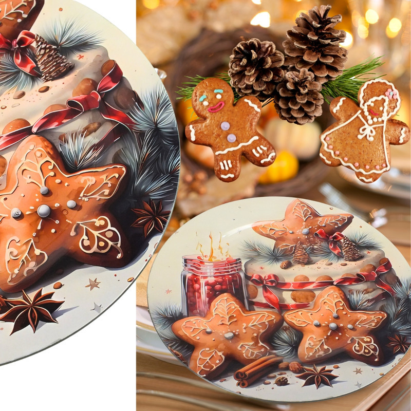 Műanyag, kerek karácsonyi tálca tortákhoz és süteményekhez. Tökéletes választás az ünnepi asztal megterítéséhez, egyszerűvé teszi a torta mozgatását, és dekoratív megjelenésével hozzáad az ünnepi hangulathoz. Kreatív kiegészítőként is használhatod. Átmérő: 33cm