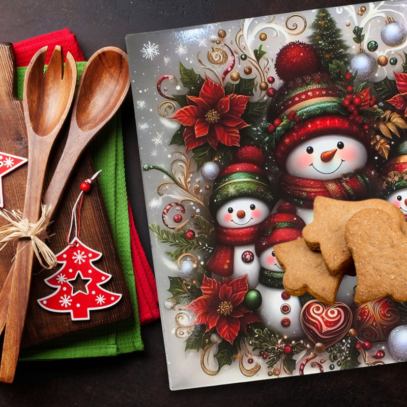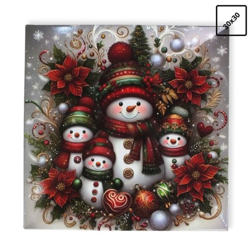 Műanyag négyszögletű tálca Hóember család 30x30cm – koszorúkészítéshez és ajtódíszhez