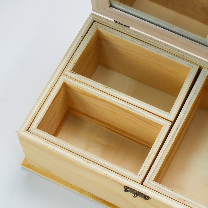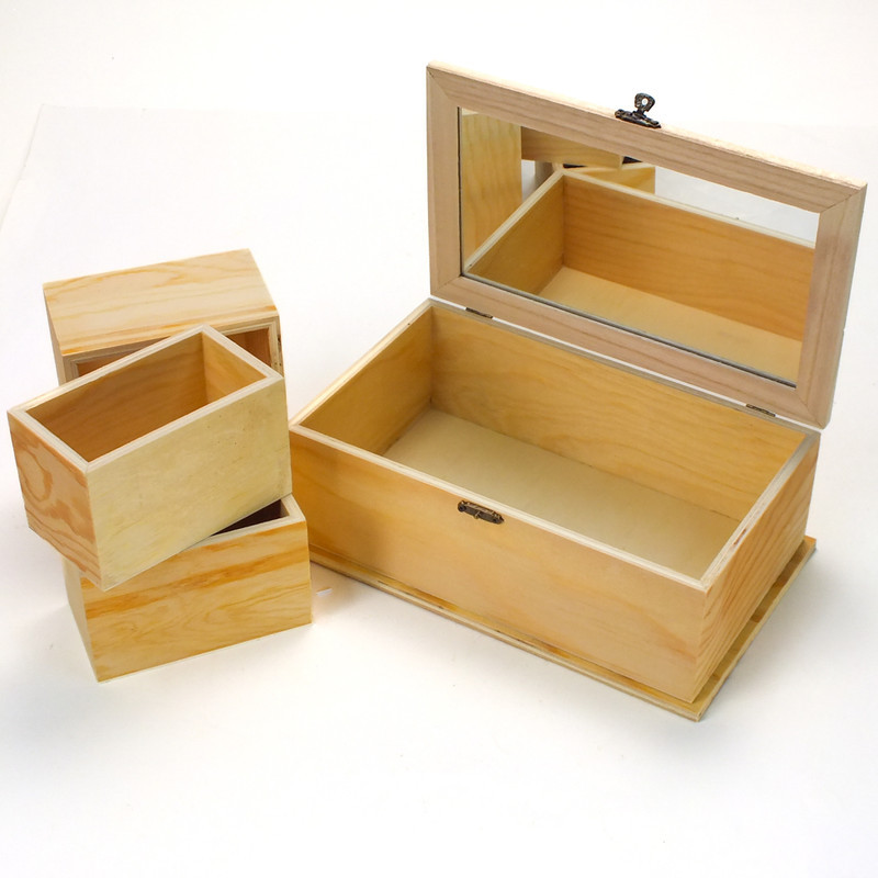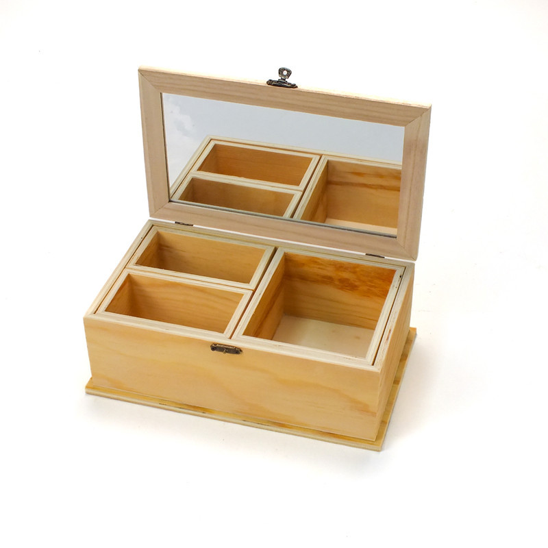 Natúr fából készült ékszertartó fadoboz. Csatos zárral, tükörrel ellátott tetővel és 3 kivehető rekesszel.Méret: 16x26cm, mag:9,5cm. Felhasználható festéshez, decoupage technikához és egyedi dekorációhoz. Akrilfestékkel,