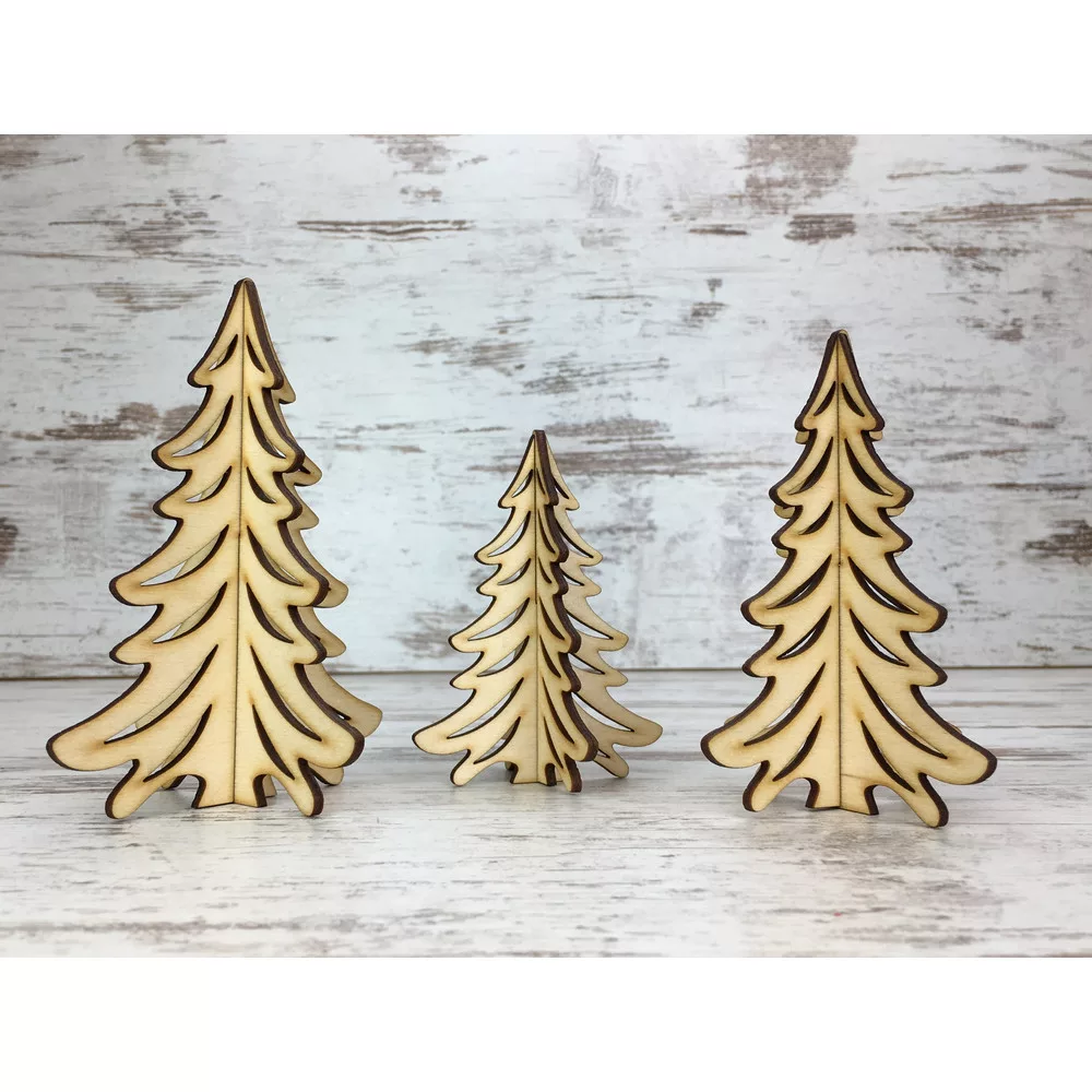 Natúr fa - 3D fenyő szett 3db/csomag – karácsonyi dekorációhoz és koszorúhoz