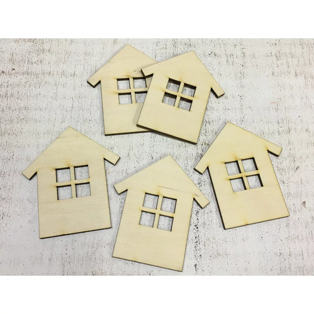 Natúr fa - Ablakos házikó 8cm 5db/csomag – festéshez és dekorációhoz