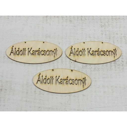 Natúr fa - "Áldott Karácsonyt" áttört tábla 3db/csomag – karácsonyi dekorációhoz
