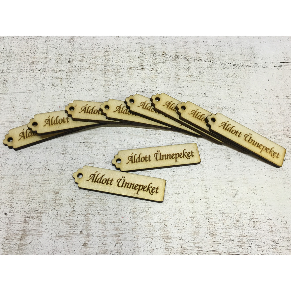 Natúr fa - "Áldott ünnepeket" hosszú scrapbook tábla 10db/csomag – karácsonyi dekorációhoz