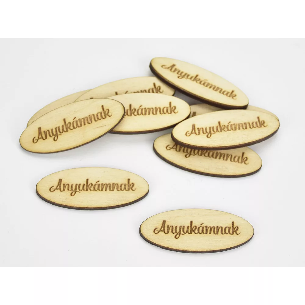 Natúr fa - "Anyukámnak" ovál tábla 2x4,9cm 10db/csomag – anyák napi ajándékhoz és dekorációhoz