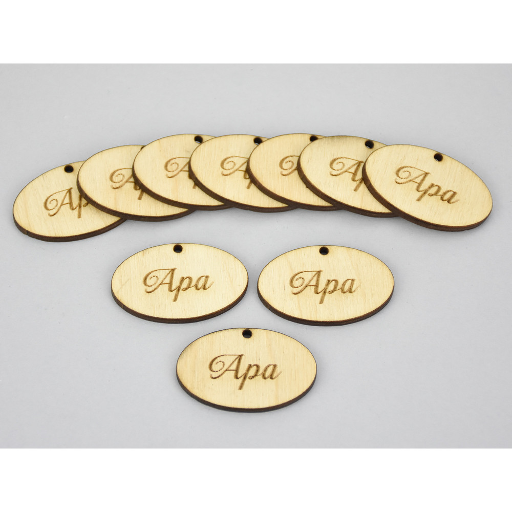 Natúr fa -"Apa" ovál tábla 2,5x4cm 10db/csomag – feliratként és tábladíszként