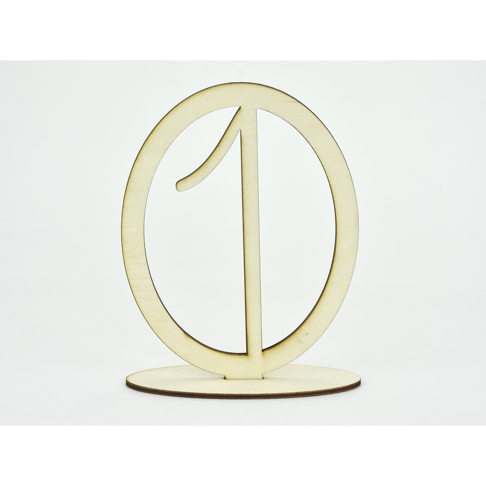 Natúr fa - Asztalszám ovális keretben 1-es 15,5cm – esküvői dekorációhoz