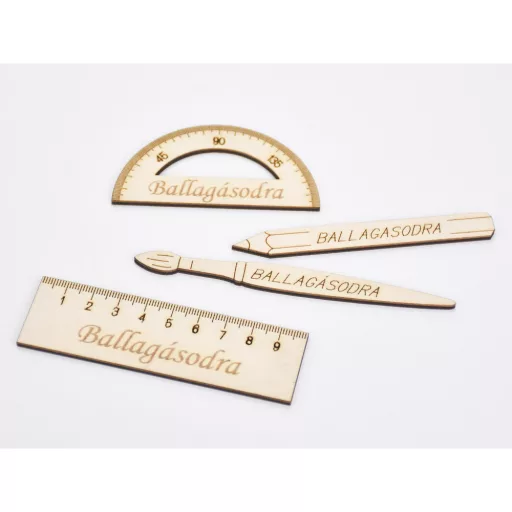 Saját gyártású fatermék. Dekorfestékkel és lazúrral festhető. Ballagási ajándékok, csokrok díszítéséhez ajánljuk. Szögmérő: 8x4cm, vonalzó: 10x3cm, ceruza: 10x1,1cm, ecset: 12x1,1cm. Beépíthető ballagási ajándékba, emlékdekorációba és egyedi ballagási kellékekbe. Festheted, ragaszthatod, szalaggal és felirattal kombinálhatod. Kinek ajánljuk? Ideális ballagási ajándékok és egyedi emlékek készítőinek.
