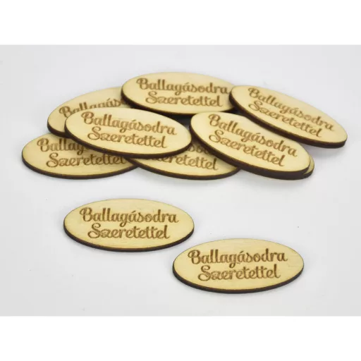 Natúr fa - "Ballagásodra Szeretettel" ovál tábla 2x4,5cm 10db/csomag – ballagási ajándékhoz és emlékdekorációhoz