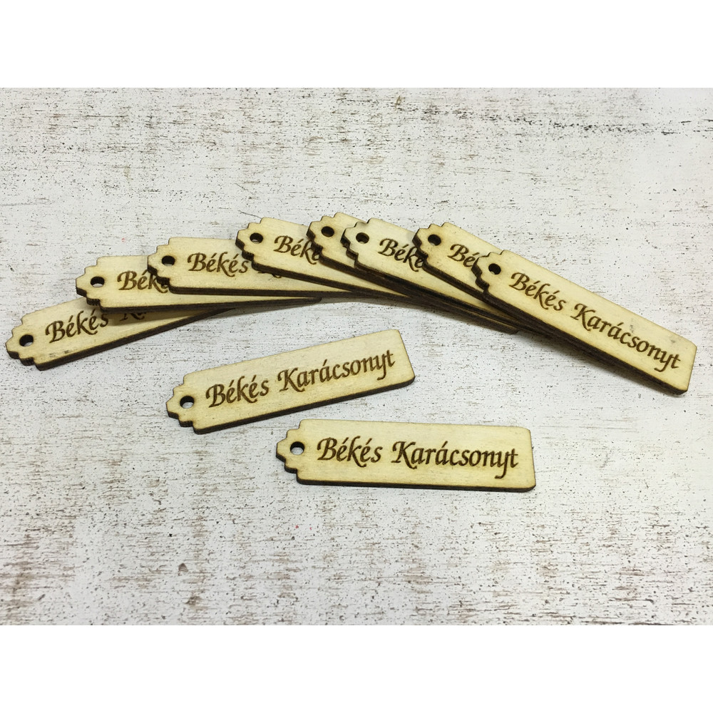 Natúr fa - "Békés karácsonyt" scrapbook tábla 6,5cm 10db/csomag – karácsonyi koszorúhoz és asztaldíszhez