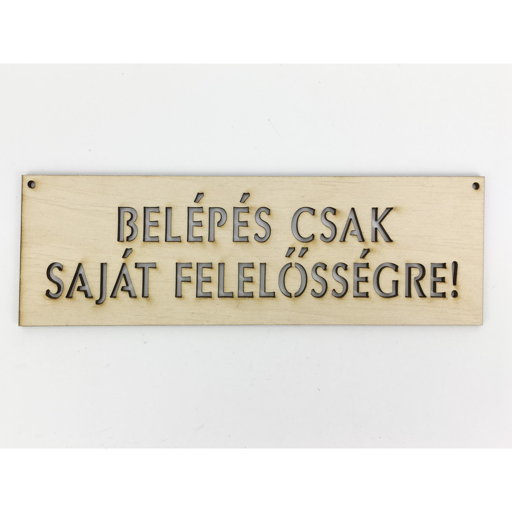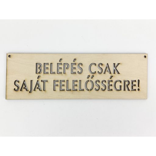 Natúr fa - "BELÉPÉS CSAK SAJÁT FELELŐSSÉGRE!" tábla – festéshez, dekorációhoz