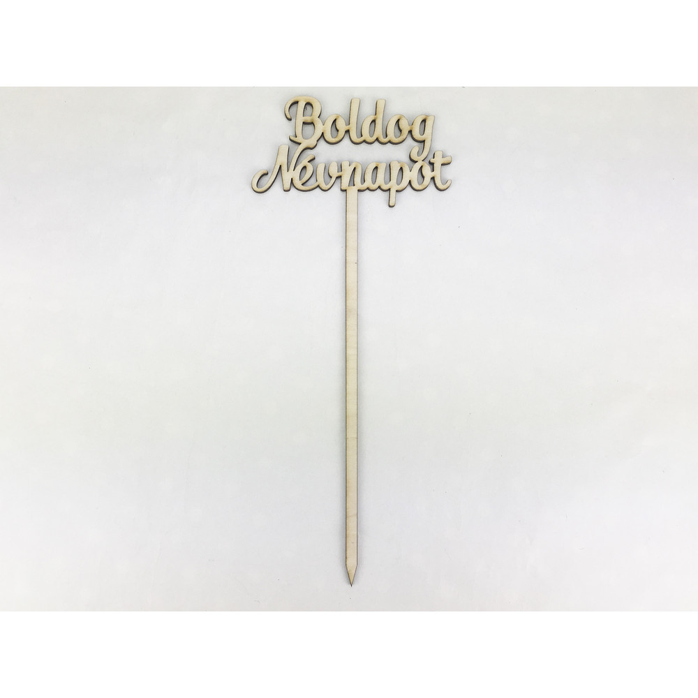 Natúr fa - Beszúrós "Boldog névnapot" felirat 10,5cm – ajándékcsomagoláshoz és ünnepi dekorációhoz