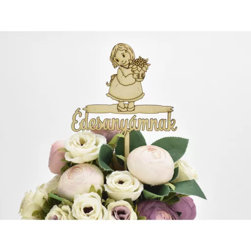 Natúr fa - Beszúrós felirat "Édesanyámnak" kislányos – anyák napi dekorációhoz