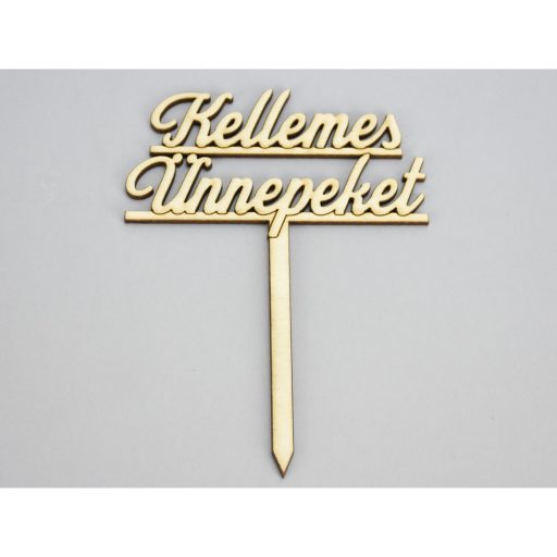 Natúr fa - Beszúrós "Kellemes ünnepeket" felirat 10cm – karácsonyi koszorúhoz és asztaldíszhez