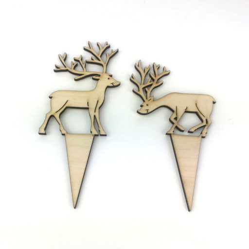 Natúr fából lézervágott szarvasok. A beszúrós talp megkönnyíti a dekorációba való beillesztést és segít megúszni a ragasztással járó nehézségeket. Így utólag is megváltoztathatjuk a szarvasok helyét a készítményben.Saját gyártású fa termékeink számos lehetőséget kínálnak. Festheted, dekupázsolhatod, ​ragaszthatod, díszítheted csipkével, verettel, szalaggal, de natúr állapotban is tökéletes dekoráció.Méret: 15x6cm/ 13x7cm, vastagság:3mm