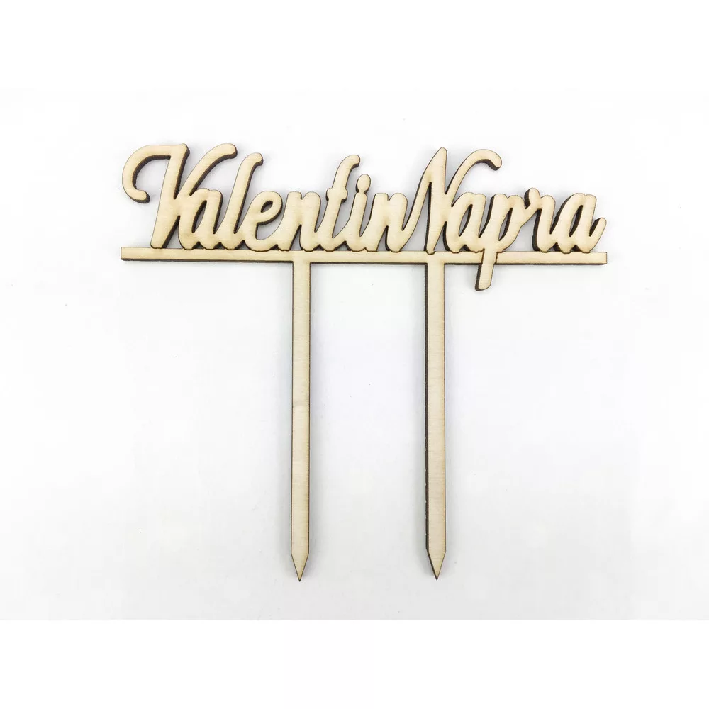 Natúr fa - Beszúrós "Valentin napra" felirat 11,5cm – valentin napi ajándékhoz és romantikus dekorációhoz