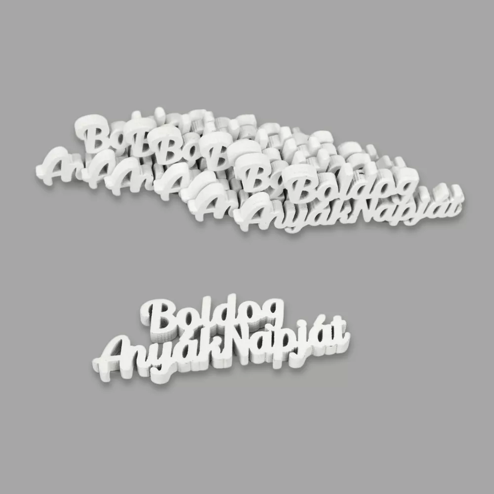 Natúr fa Boldog anyák napját felirat fehér 8db/csomag. Felhasználható koszorúhoz, asztaldíszhez és dekorációhoz. Saját gyártású natúr fa termék. Festhető, ragasztható, más dekorációs elemekkel kombinálható.