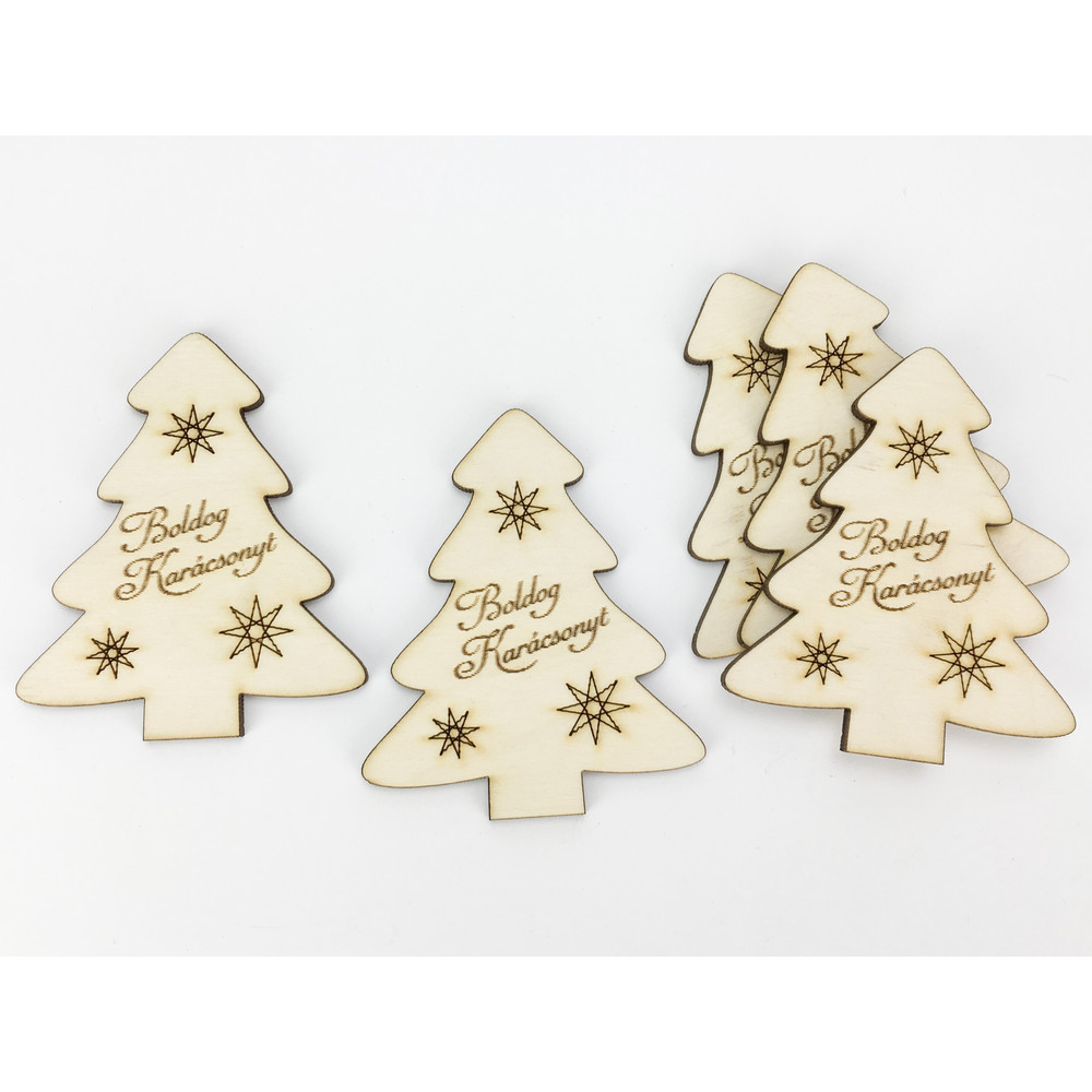 Natúr fa - "Boldog Karácsonyt" fenyő 8cm 5db/csomag – karácsonyi dekorációhoz