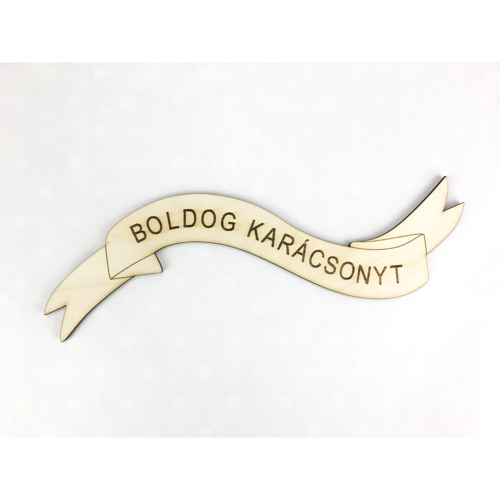 Natúr fa - "Boldog karácsonyt" szalag 23cm – karácsonyi koszorúhoz és asztaldíszhez