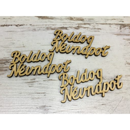 Natúr fa - "Boldog Névnapot" 8,2cm 3db/csomag – ajándékcsomagoláshoz és ünnepi dekorációhoz