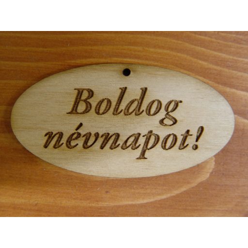 Natúr fa - "Boldog Névnapot" gravírozott ovál táblák 4x8cm 5db/csomag – ajándékcsomagoláshoz és ünnepi dekorációhoz