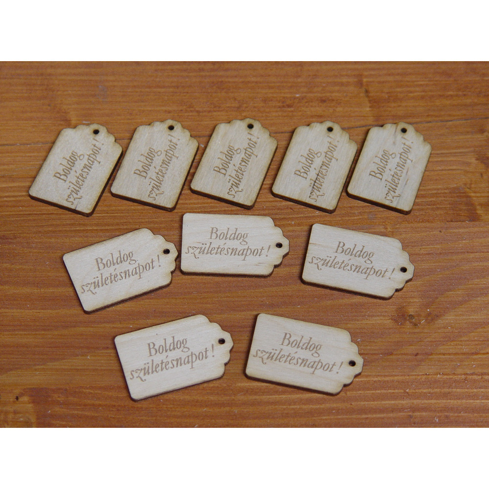 Natúr fa - "Boldog Születésnapot" gravírozott scrapbook táblák 3x4,5cm 10db/csomag – festéshez, dekorációhoz