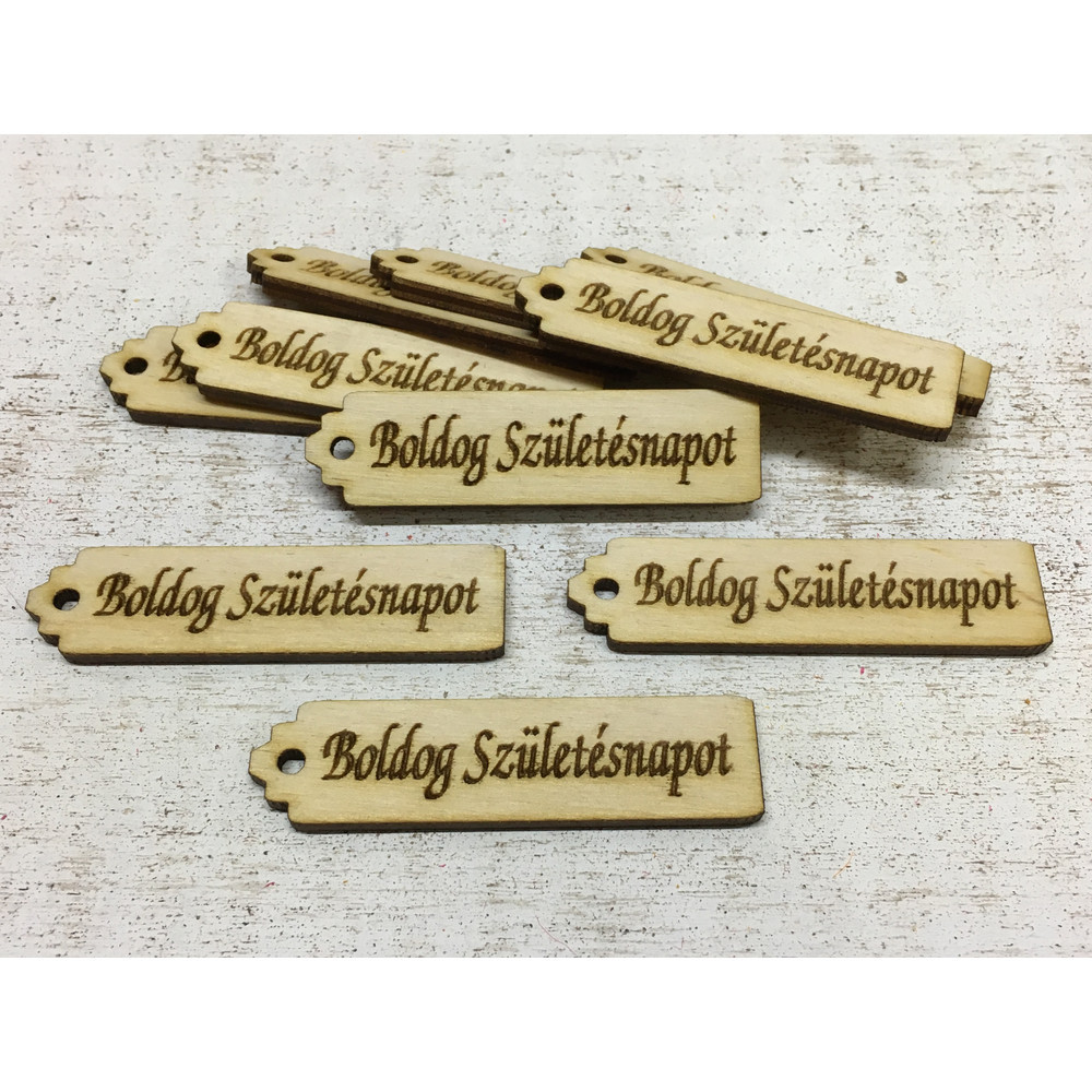 Natúr fa - "Boldog Születésnapot" hosszú scrapbook tábla 10db/csomag – ajándékcsomagoláshoz és ünnepi dekorációhoz