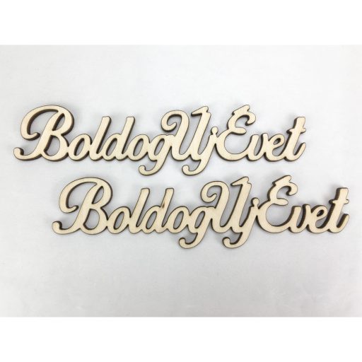 Natúr fa - "Boldog Új Évet" felirat 14,5cm 2db/csomag – karácsonyi díszítéshez és dekoráláshoz