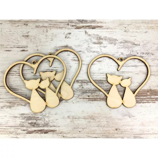 Natúr fa - Cicák szívben 10cm 3db/csomag – valentin napi ajándékhoz és romantikus dekorációhoz