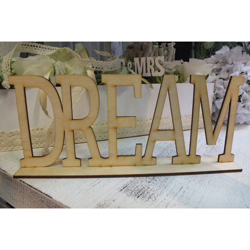 Natúr fa - "Dream" felirat talppal 25cm – feliratként és tábladíszként