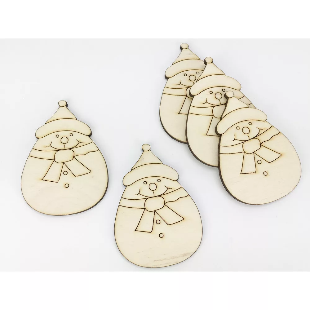 Natúr fa - Duci hóember 8cm 5db/csomag – karácsonyi dekorációhoz és koszorúhoz