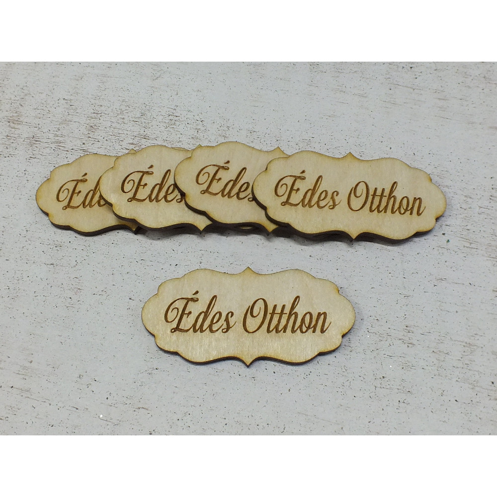 Felhasználható feliratként, tábladíszként és ajándékok kísérőjeként. Méret: 7x3,3cm, vastagság:3mm. Saját gyártású natúr fa termék. Festhető, dekupázsolható, ragasztható, szalaggal díszíthető. Anyaga alacsony fatartalmú