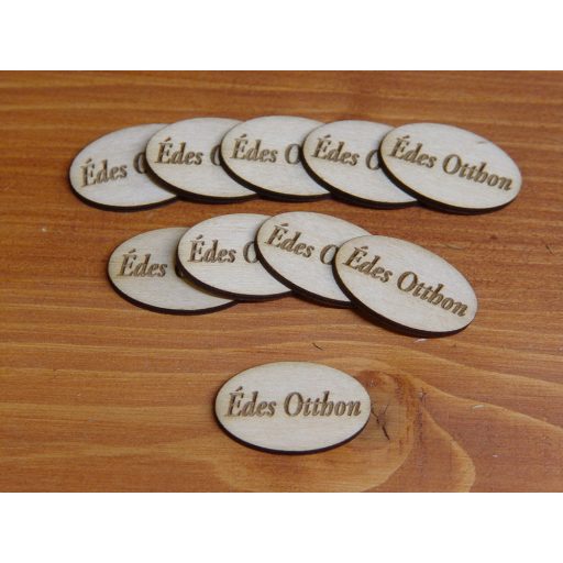 Natúr fa - "Édes otthon" gravírozott ovál táblák 10db/csomag – feliratként és tábladíszként
