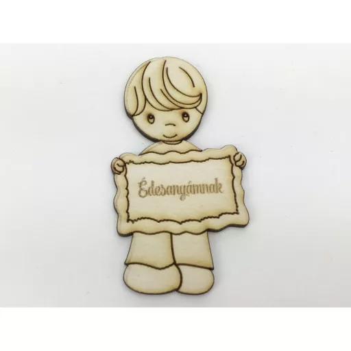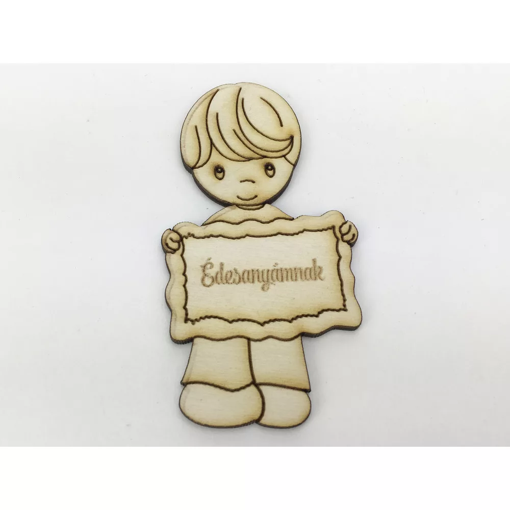 Natúr fa - "Édesanyámnak" kisfiú 5x9,5cm – anyák napi ajándékhoz és dekorációhoz
