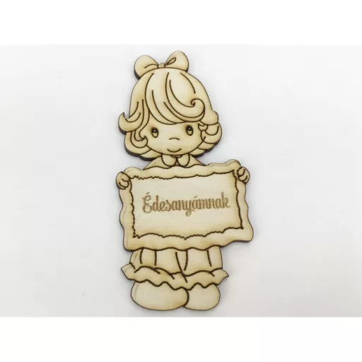 Natúr fa - "Édesanyámnak" kislány 5x10cm – anyák napi dekorációhoz