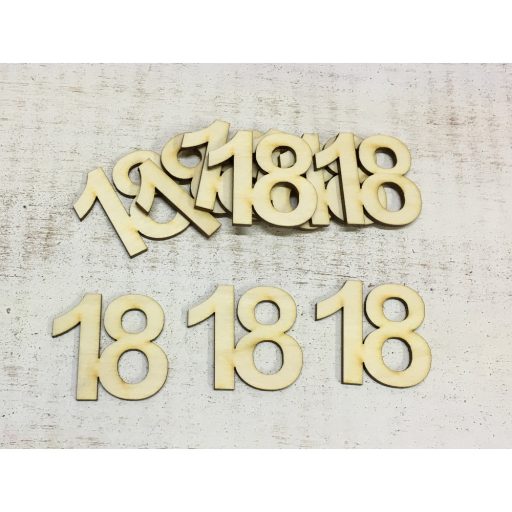 Natúr fa - Évfordulós számok 18-as 10db/csomag – festéshez, dekorációhoz
