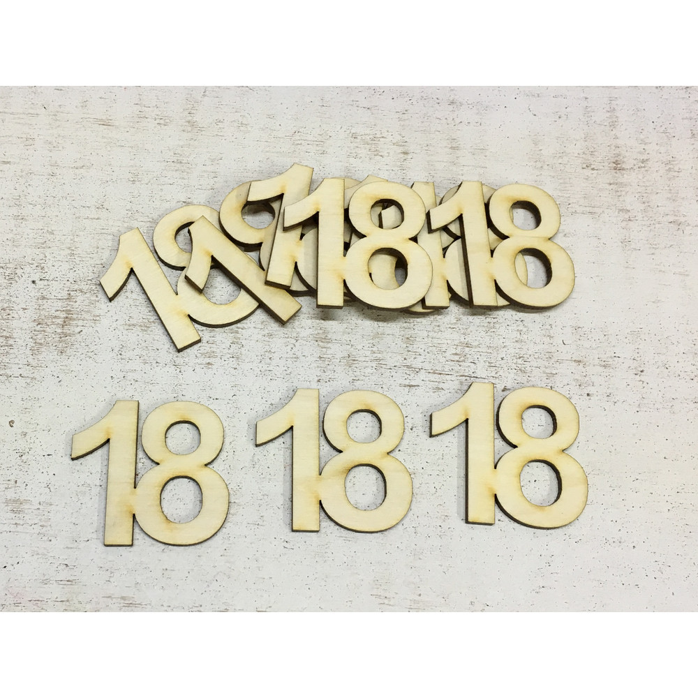 Natúr fa - Évfordulós számok 18-as 10db/csomag – feliratokhoz és dekorációhoz