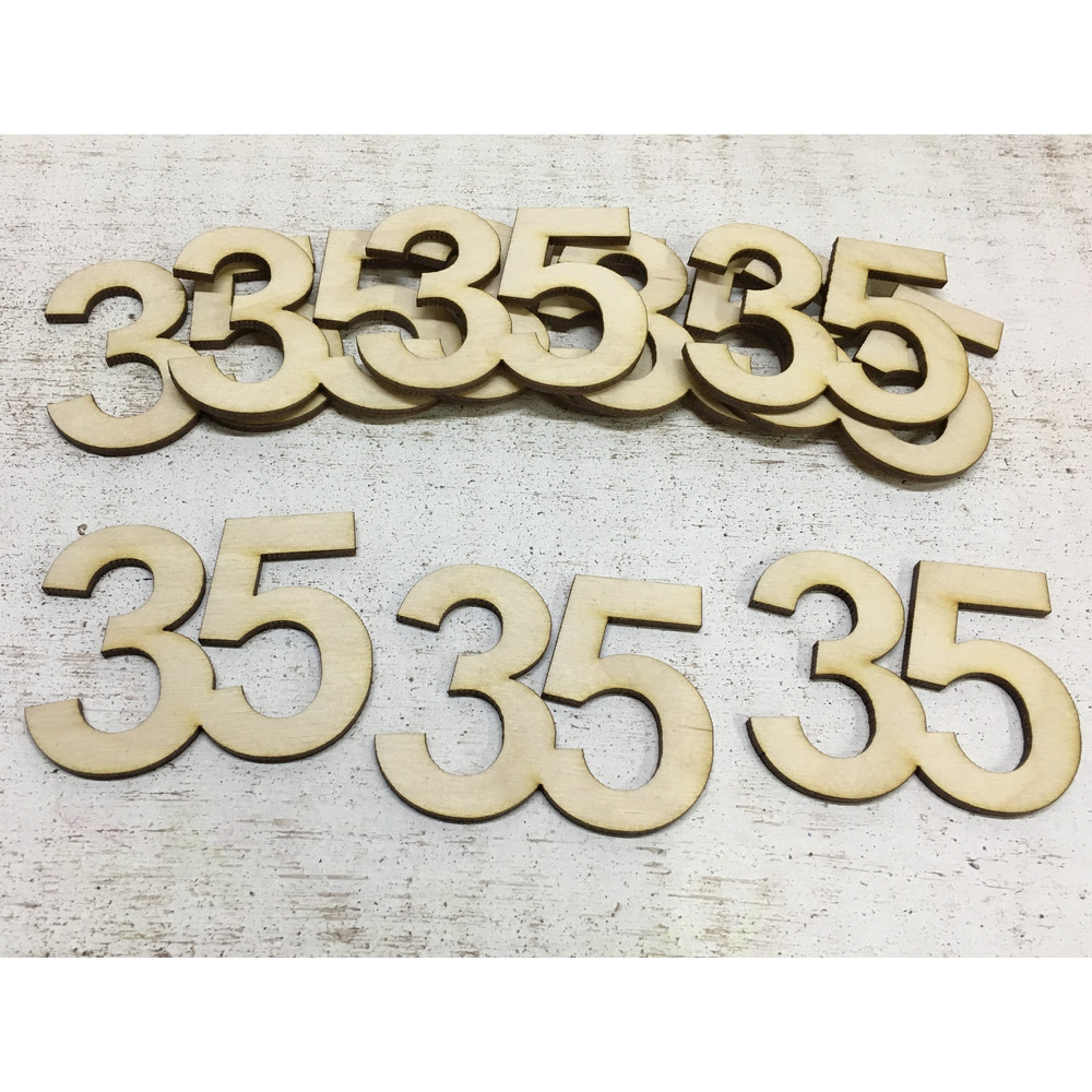 Natúr fa - Évfordulós számok 35-ös 10db/csomag – festéshez, dekorációhoz
