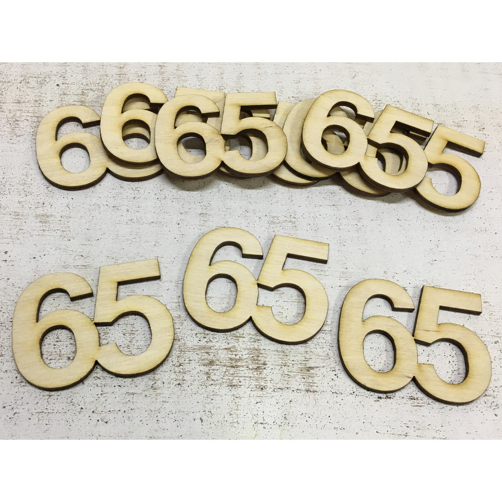 Natúr fa - Évfordulós számok 65-ös 10db/csomag – feliratokhoz és dekorációhoz
