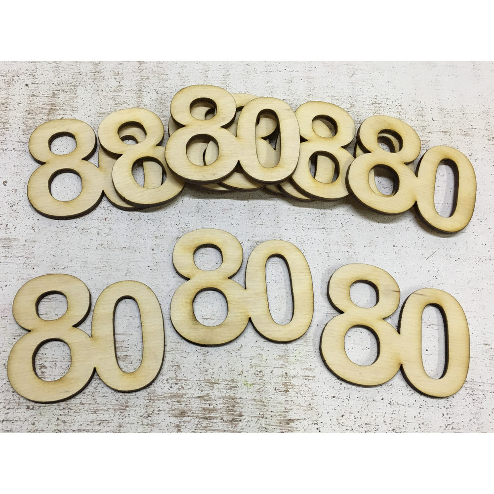Natúr fa - Évfordulós számok 80-as 10db/csomag – festéshez, dekorációhoz