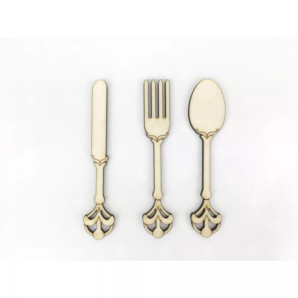 Natúr fa - Evőeszköz szett barokk 10cm 3db/csomag – festéshez és dekorációhoz