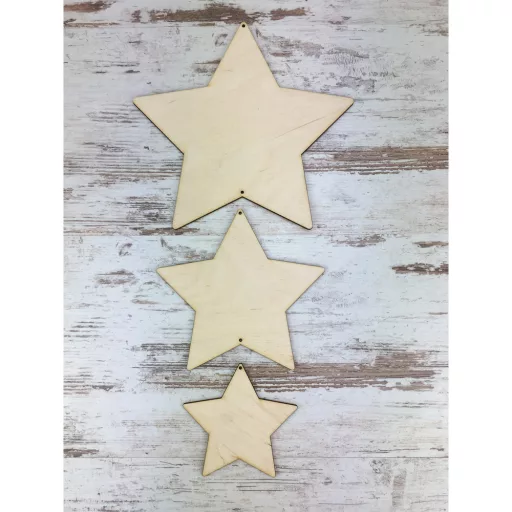 Natúr fa - Felfűzhető csillagok 20-15-10cm 3db/csomag – karácsonyi dekorációhoz és koszorúhoz